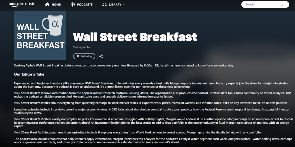 May 16, 2023June 2, 2025briolson69 Amazon Music Podcast Review: Wall Street Breakfast https://music.amazon.com/podcasts/b350b551-1e82-40cd-af1b-0f3e5d1eacf2/wall-street-breakfast Share this: Click to share on X (Opens in new window) X Click to share on Facebook (Opens in new window) Facebook Like Loading...